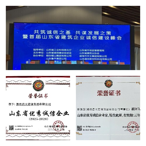 集團(tuán)榮獲首屆山東省優(yōu)秀誠(chéng)信企業(yè)稱(chēng)號(hào) 董事長(zhǎng)徐鵬強(qiáng)被評(píng)為山東省優(yōu)秀誠(chéng)信企業(yè)家